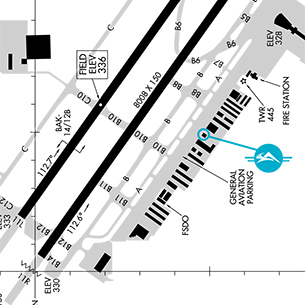 Community hangar and office space now available! Heated community hangar accommodates up to a Citation X with a 25-foot door. Additional T-hangars (700–1,500 sq. ft., 10’ doors) are also available. The property includes 4,000 sq. ft. of office space in the on-site business center with build to suit options. For more information or for questions, please reach out to the General Manager, Samantha Perez.